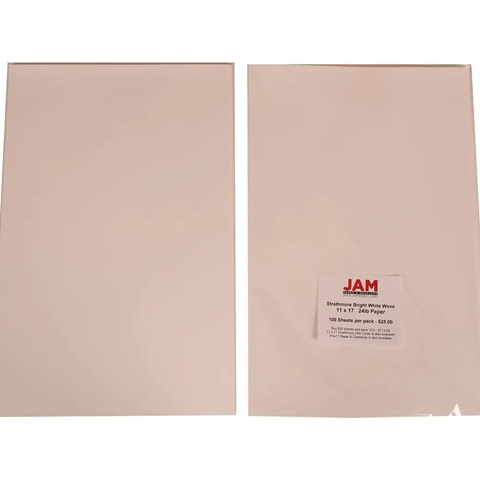 This JAM Paper Strathmore Tabloid Size Cardstock may be white, but it is never boring. Boasting a thick, quality paper as well as a luxurious woven finish, this white cardstock will surely be noticed and remembered. It is made of 88lb paper, so it is reliable and sturdy. Not only that, the stark white Strathmore bright white wove color is the brightest of whites, so your correspondence of project will always look crisp and clean. It is a tabloid size, so it measures 11 x 17 inches. Use it for invitations, cards, notes, letters, business mailings, promotional projects, arts and crafts and more! This cardstock is sold in packs of 50.