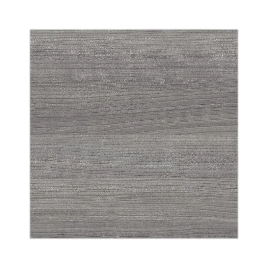 - Thermally fused laminate over composite wood in a platinum gray finish