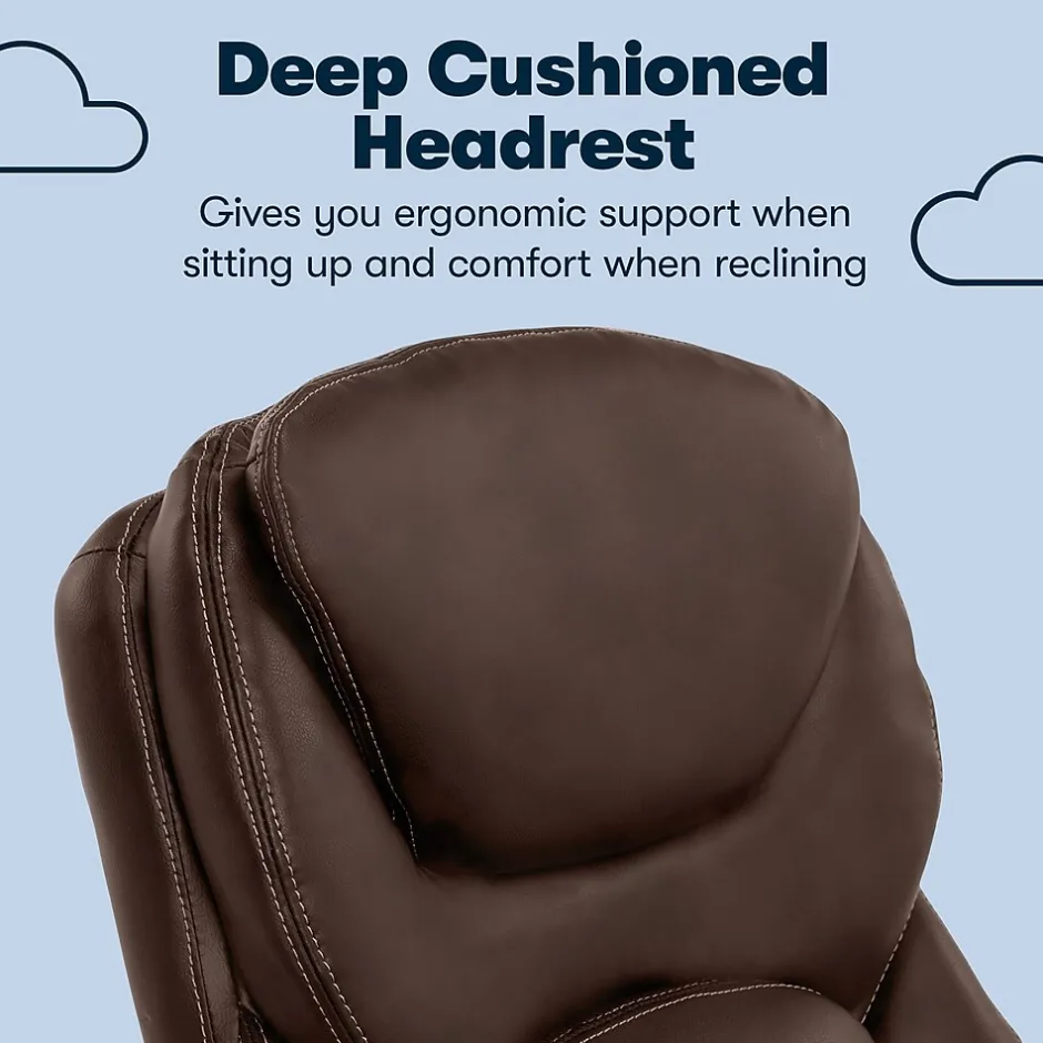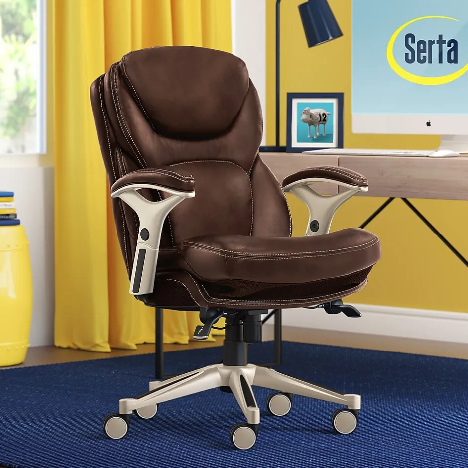 Imagine an office chair that helps promote strength and flexibility in your back. That’s the Serta Works ergonomic executive office chair with Back in Motion technology. This feature-rich, performance-focused chair helps its users become more productive and efficient by maximizing lower back support and comfort while seated. The Back in Motion active seat technology swivels the lumbar forward like the pelvis tilt exercise, promoting strength and flexibility in your core. The push-button adjustable armrests and pneumatic height adjustment can be customized to find the right fit for you. And the multilayered cushions are comfortable yet supportive, so you’ll feel refreshed and rejuvenated, even after a long day.