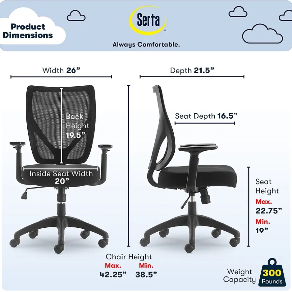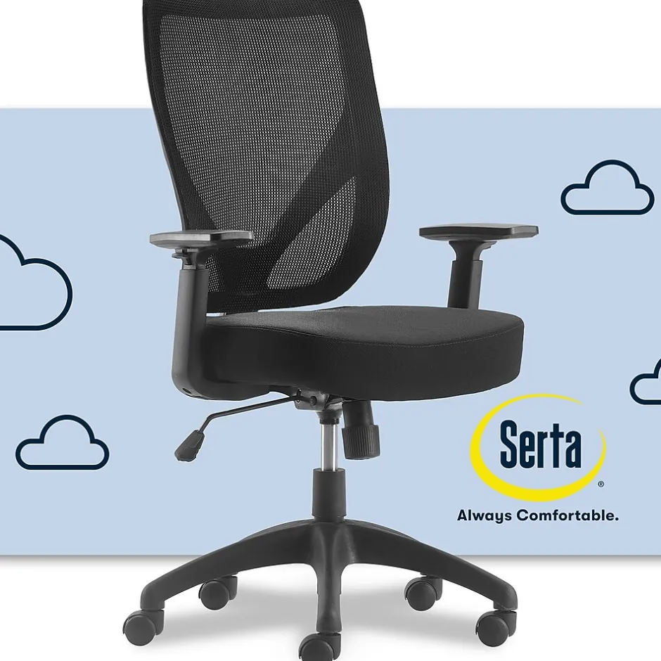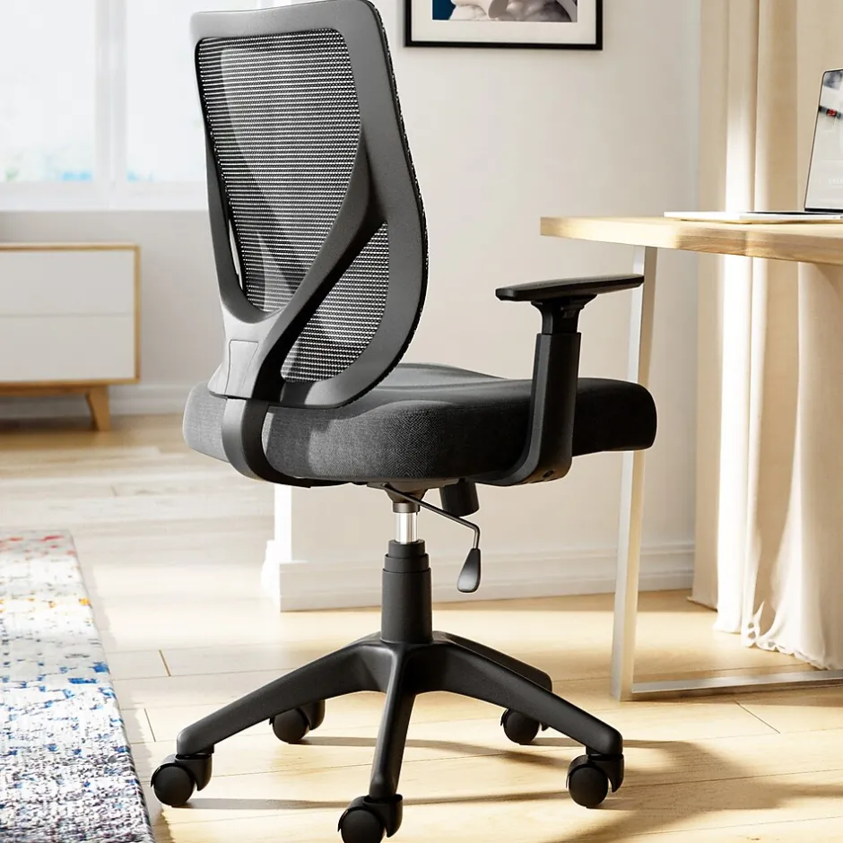 Give yourself a pat on the back with an office chair that supports your back like the Serta Works mesh office chair. Innovative and comfort-focused, this computer chair’s thick cushioned seat and lumbar support provide comfort so you can optimize productivity. Its adjustable arms and 360-degree swivel mechanisms provide freedom of movement while the breathable mesh back promotes airflow for keeping cool under tight deadlines.