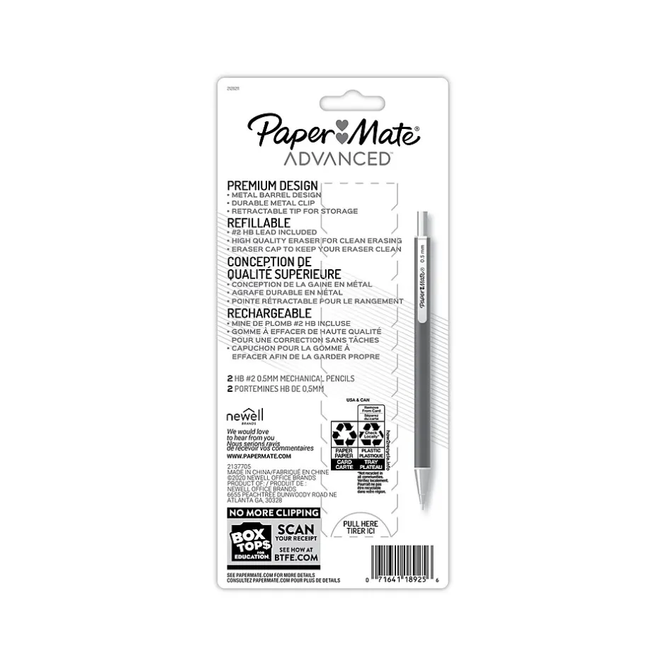 These Paper Mate Advanced pencils feature a metal barrel design and durable clip. Their slim shape fits comfortably in your hand for more control.