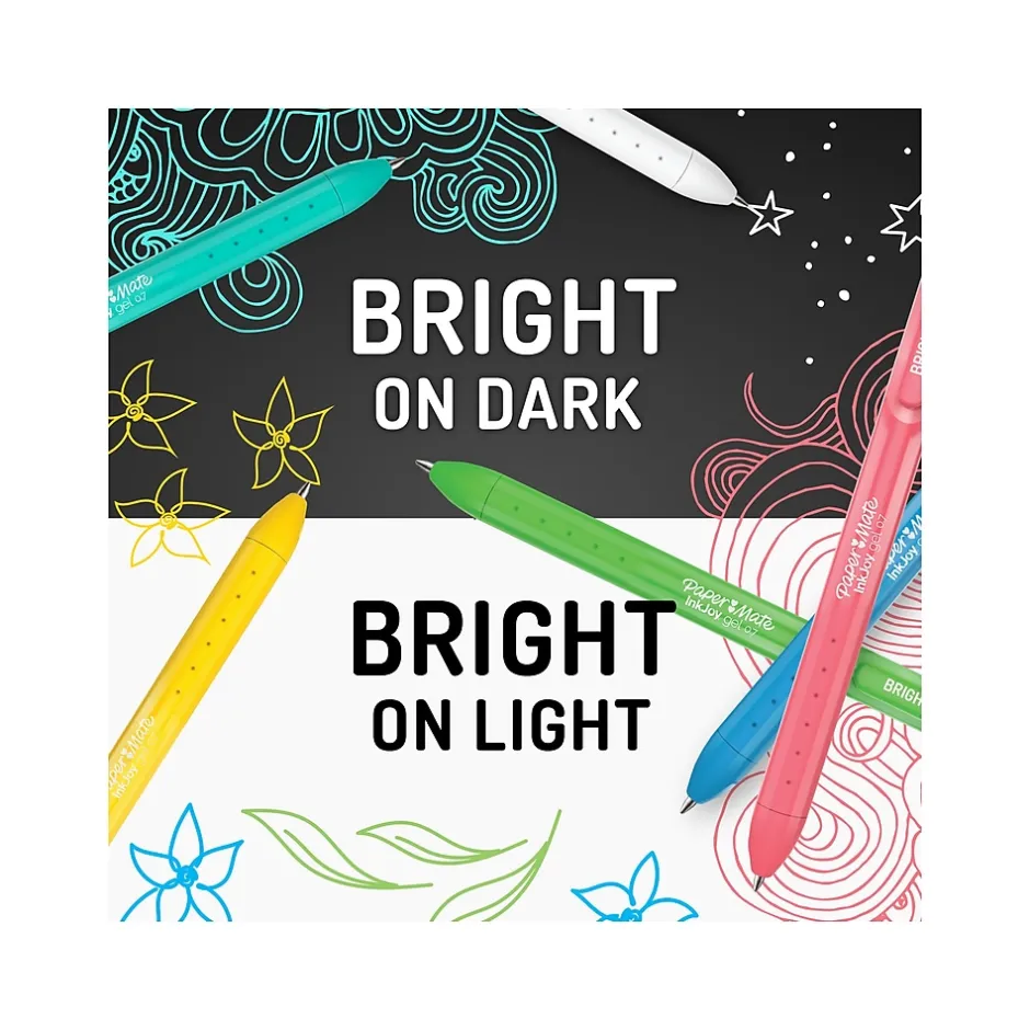 The vibrant colors of the Paper Mate InkJoy gel pens radiate brighter than ever. That’s because this collection of colorful pens features vivid gel ink that’s bright on dark and light paper. These pens have a bright and smooth ink that keeps the joy flowing as fast as your thoughts. Plus, they come fully wrapped with a comfort grip, for an enjoyable writing experience throughout. Brighten up your daily writing tasks, homework, journaling, and more with these Paper Mate InkJoy bright gel pens.