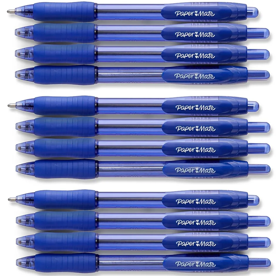 Enjoy a high-performance writing experience with these bold-point blue retractable ballpoint pens. The visible ink supply ensures you don’t run out without warning, while the retractable design makes these pens ready to use with a click. These Paper Mate Profile blue retractable ballpoint pens have bold-point tips to make writing smooth and thick, while the contoured rubber grips provide the comfort needed to get through long writing sessions.
