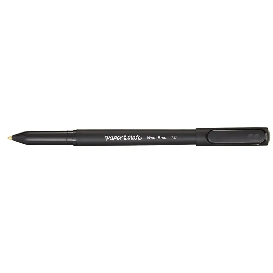 Paper Mate® Write Bros.® ballpoint pens deliver smooth writing for any occasion. The pens’ contemporary design offers an upscale look and feel at affordable prices. The thick barrel and long grip zone bring you comfort while you write. And they’re loaded with ultra-low viscosity ink for a smooth writing experience. Ideal for classrooms, offices, restaurants, and homes, Paper Mate® Write Bros.® ballpoint Pens offer the reliability and versatility to handle all of life’s important writing tasks. Black barrel pens with black ink sold as 60 per pack.