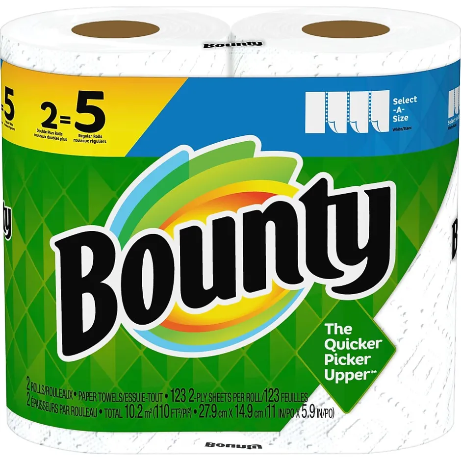 Don’t let spills and messes get in your way. Lock in confidence with Bounty, the Quicker Picker Upper*. This pack contains Bounty white Select-A-Size paper towels that are 2X more absorbent* and strong when wet, so you can get the job done quickly. *vs. leading ordinary brand
