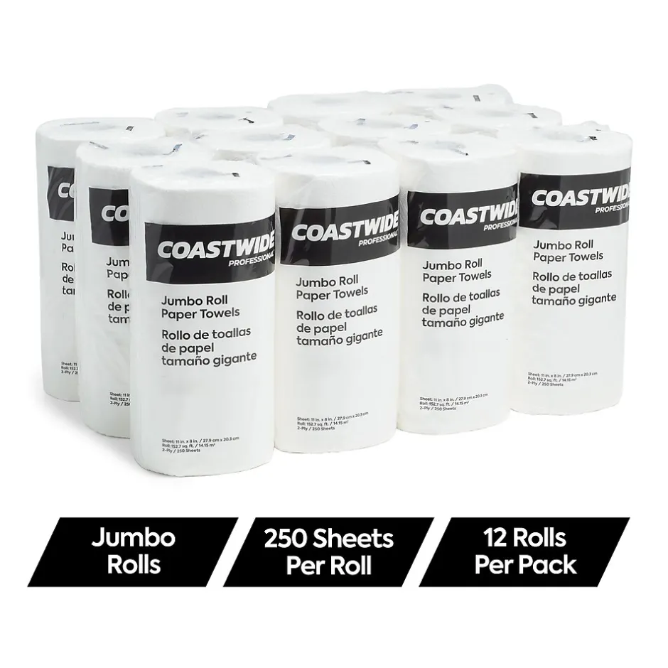 Manage the cleaning and dining needs of your workplace kitchen or bathroom with these durable Coastwide Professional paper towels. Each one has a classic white color to clearly indicate fully clean counters and comes in a two-ply thickness for superior absorbency. Each roll of towels is individually wrapped for safe storage and sheets are perforated for convenient dispensing so you can keep a roll on hand to offer easy hand-drying anywhere it’s needed.