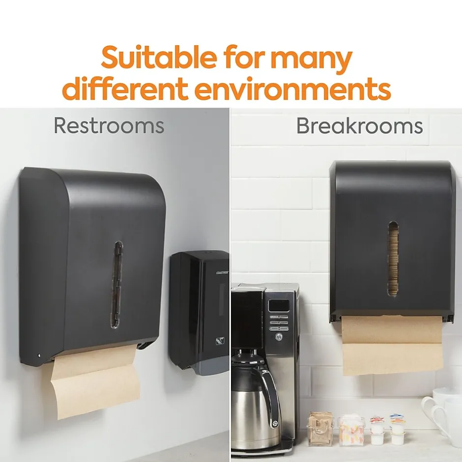 - Fits standard C-fold or multifold towel dispensers