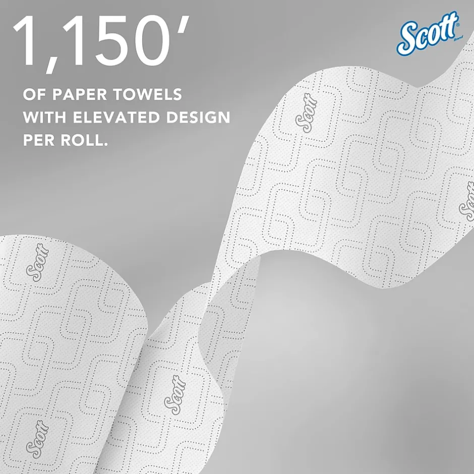 - 1,150’/Roll, 6 Scott® Proâ„¢ High-Capacity Hard Roll Towel Rolls/Case; 6,900’/Case; with Elevated Design and Absorbency Pocketsâ„¢; for Blue Core Dispensers; White