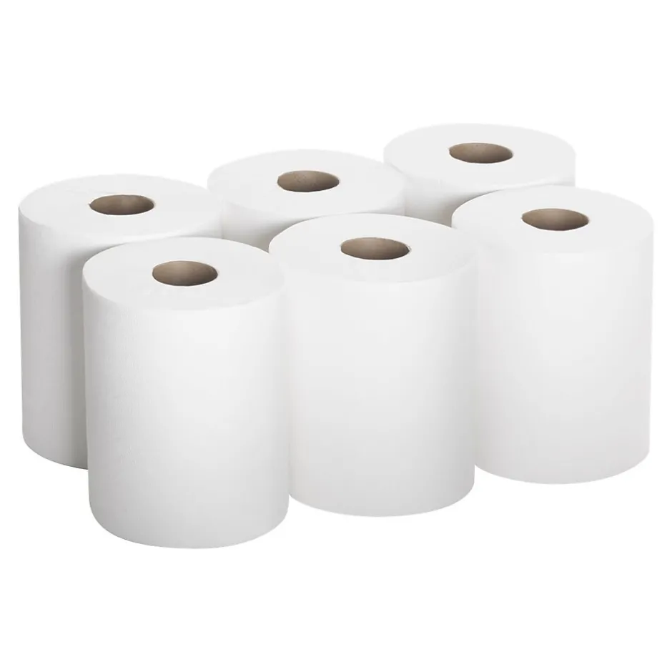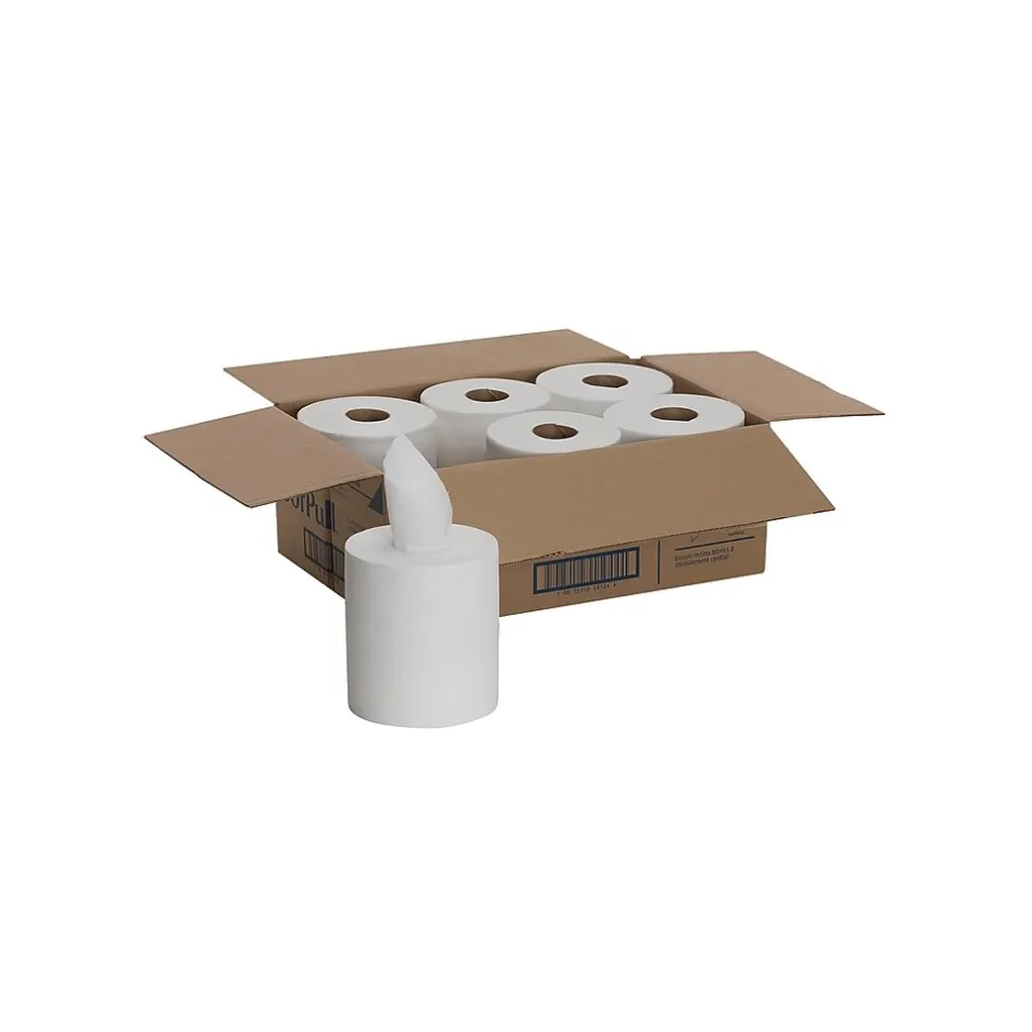 Control paper waste with these Georgia-Pacific SofPull center-pull premium paper towels, which dispense single, full sheets one at a time. The soft texture offers added comfort when drying hands and the absorbent construction soaks up liquids quickly. Each roll features a simple design that’s easy to load into compatible dispensers. With 320 sheets per roll, this six-roll case of Georgia-Pacific SofPull center-pull paper towels ensures an ample supply for your place of business.
