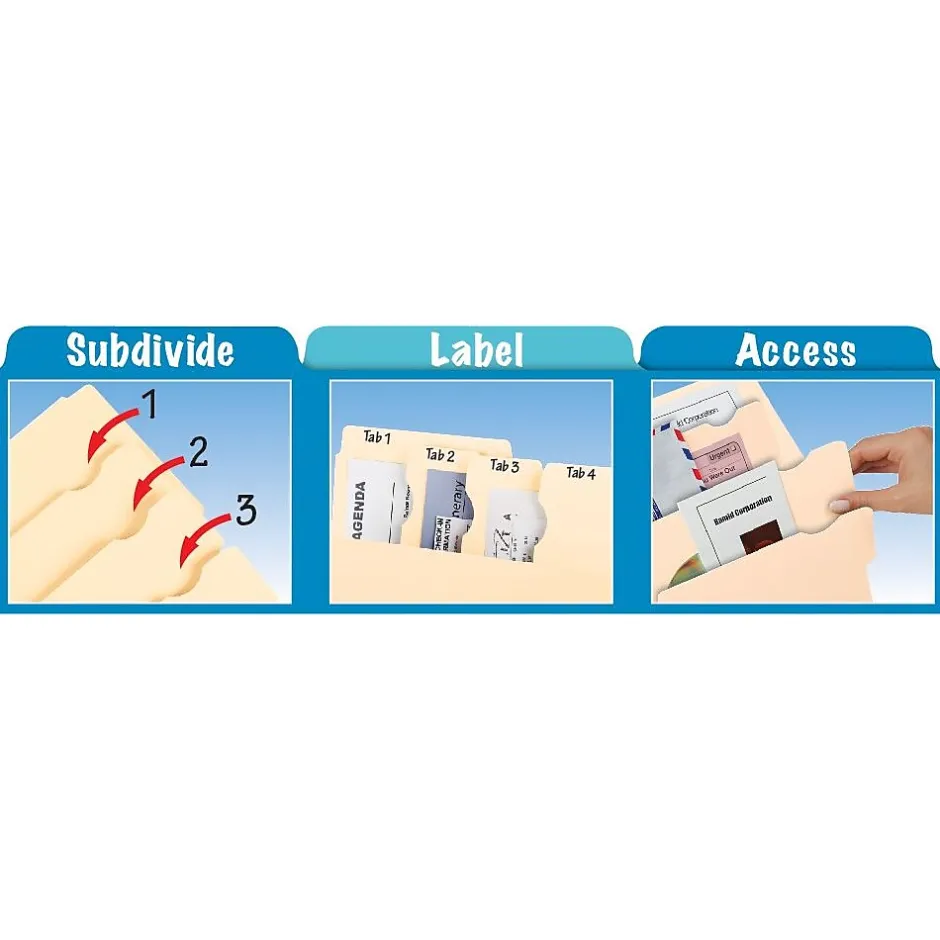 Includes four tabs for easy labeling of both the folder and three subdivisions inside it. The manila paper is durable and easy to write on, making these folders versatile, while the standard letter sizing works with most documents. Resistant to staining and abrasion, these folders are designed to handle the rigors of regular office use.