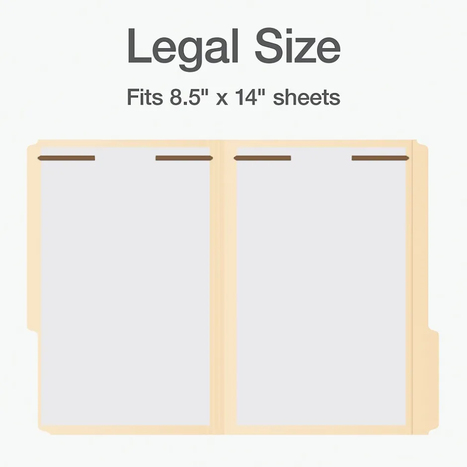 These Pendaflex Fastener Folders have thick, reinforced tabs that will better withstand wear and tear. Two embedded fasteners keep paperwork ordered and in place. The 1/3 cut tabs are guide height for better visibility and come in 3 different positions (left, right, center), so you can see all of your labeled tabs easily. Each folder fits legal-sized papers and is scored along the bottom for 3/4 inch expansion. Box of 50 manila fastener folders.