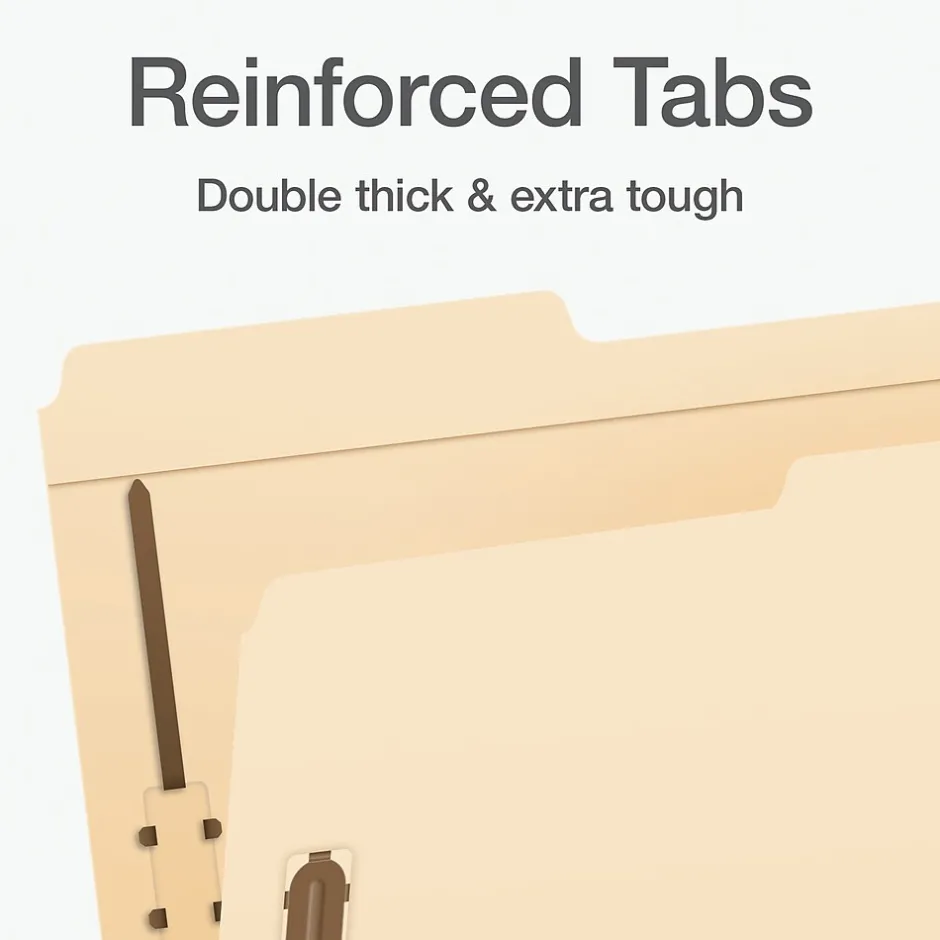 - These reinforced, manila fastener folders have guide height tabs and two embedded fasteners to keep your papers in order and in place