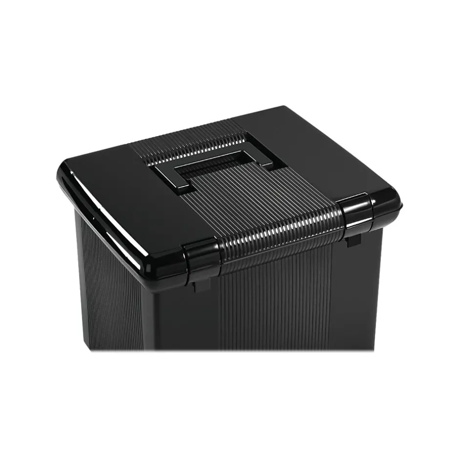 Store and organize documents in this portable file box. A convenient carrying handle makes this box easy to move, while the spacious interior offers ample space for up to 22 letter-size hanging file folders. The latch closure keeps the lid firmly closed to prevent items from getting lost. With durable plastic construction, this Pendaflex file box stands up to regular wear and tear.