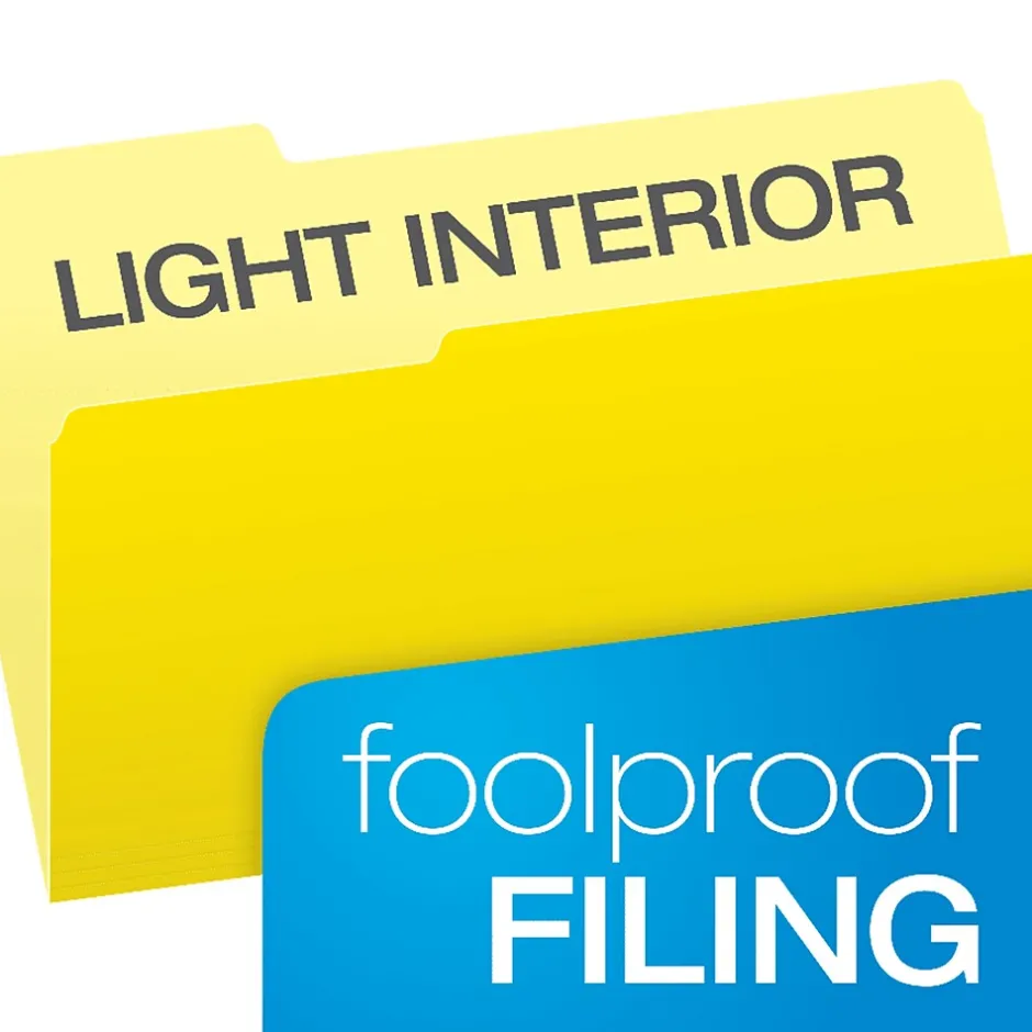 Double your options-this 11 pt. stock, acid-free file folder’s two-tone color reverses to double the number of available options, and the offered variety of bright colors makes color-coding easy for faster filing and retrieval. Its interior is a lighter shade than its exterior making top tabs easier to see, preventing misfiling.