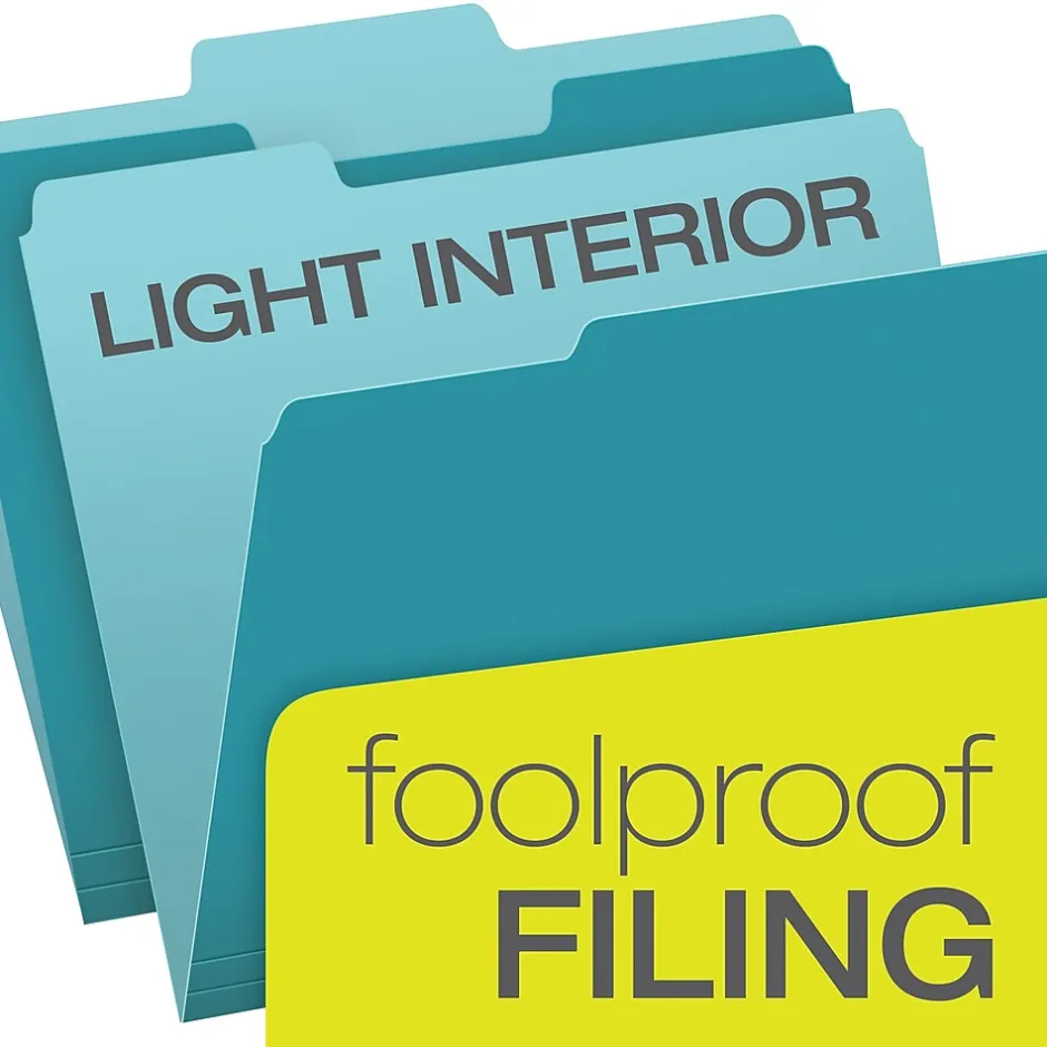 Interior folders are ideal for use with hanging folders. Folders are designed to separate groups of papers inside a hanging folder or to transfer papers from file to desk. Slightly shorter than a standard file, the folders won’t obscure the hanging folder tab. Lighter interior colors help prevent misfiles.