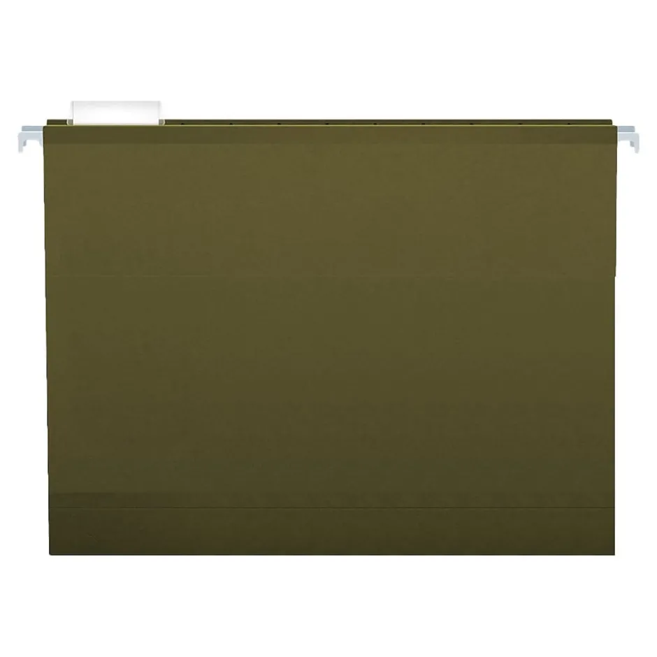 Utilize these file folders that expand to accommodate up to 800 sheets of paper to maximize document storage. These 4-inch folders are made from post-consumer materials and are edged with polylaminate strips for durability. These standard-green Pendaflex hanging file folders come with an interior InfoPocket to store small items along with documents.