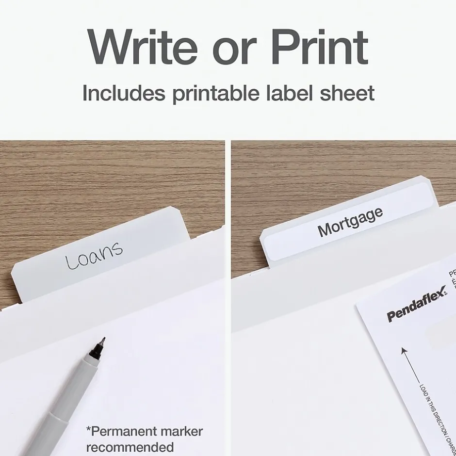 - Feature large 1/3 cut tabs and includes a printable sticker label sheet
