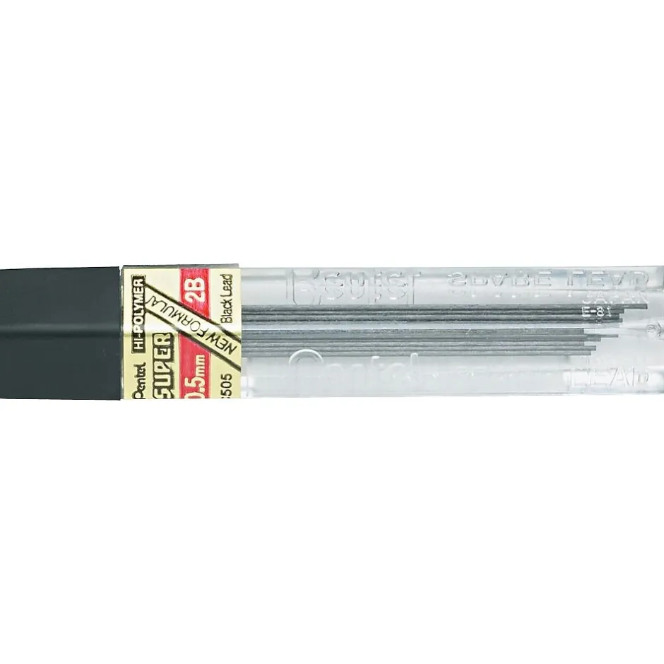 Pentel Super Hi-Polymer® Lead refill has 0.5 mm leads to offer smooth writing. Very soft 2B lead refill is made of 100 percent recycled content for long durability, sold as 12 leads.