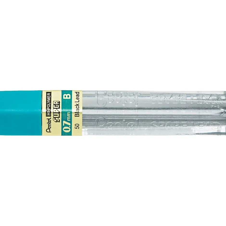 Pentel Super Hi-Polymer® Lead refill has 0.7 mm leads to offer smooth writing. Soft B lead refill is made of 100 percent recycled content for long durability, sold as 12 leads per tube.