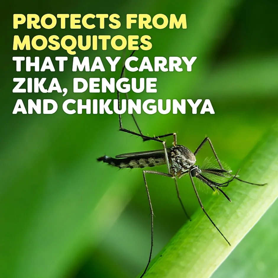 - Repels mosquitoes that may carry the Zika, Dengue virus or West Nile virus