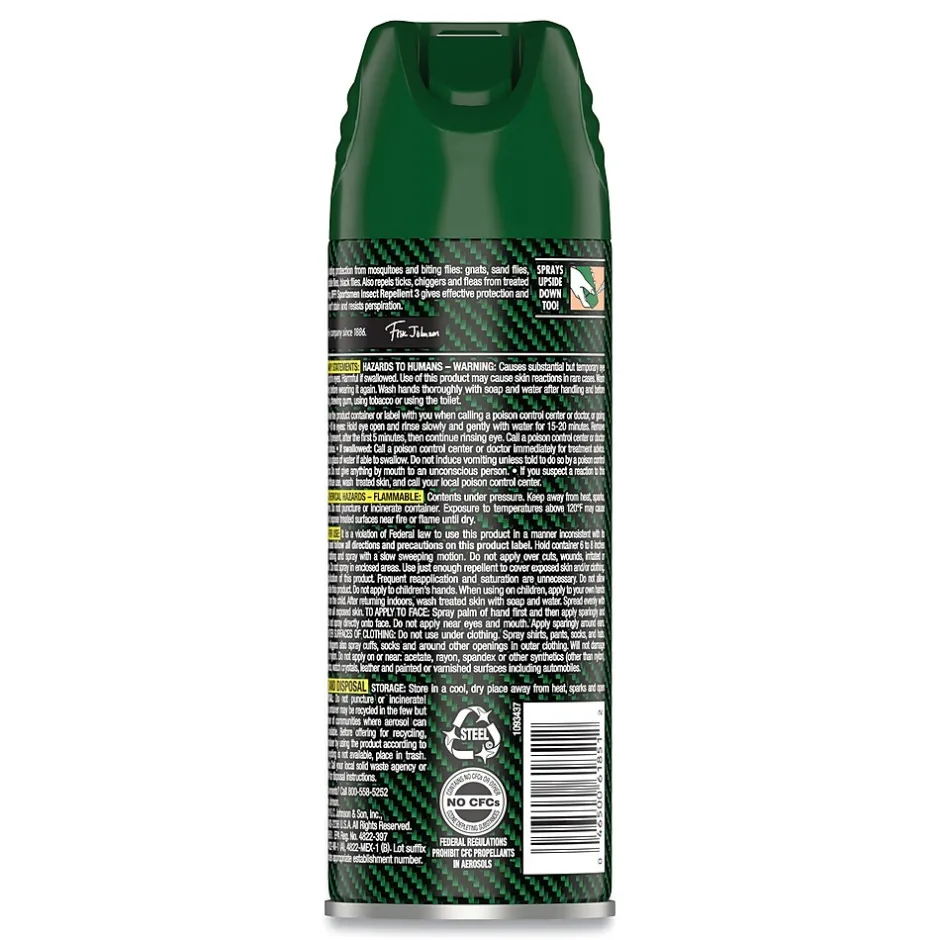 Keep bugs off when you’re on the job—this outdoor insect repellent is perfect for jobs in construction, logging, landscape, property maintenance, grounds keeping, and other outdoor tasks. Formulated with 30% DEET, repellent provides up to eight hours of protection against mosquitoes. Non-greasy formula won’t stain and resists perspiration. Provides long-lasting protection from mosquitoes, ticks, chiggers, fleas, stable flies, black flies, gnats, no-see-ums and deer flies. Repels mosquitoes that may carry the Zika virus, Dengue virus, and West Nile virus. The special valve system allows the aerosol to be sprayed in any direction, permitting easy application to skin and clothing. Ideal for use during outdoor activities; formulated with the sportsman in mind.