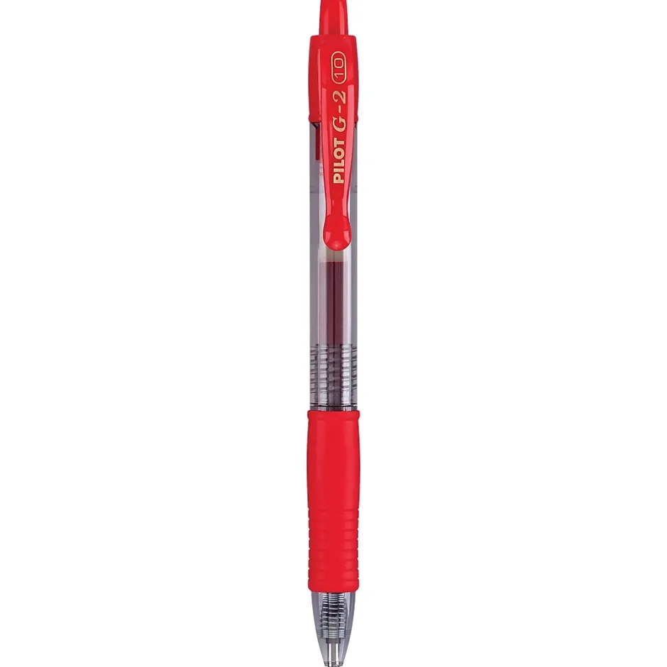 Enjoy free-flowing, comfortable writing by using these retractable gel roller pens. Featuring a 1.0mm bold-point tip, these pens produce bold, smooth lines, while the eye-grabbing red ink keeps notes front and center. These Pilot G2 bold-point premium gel roller pens have a round, see-through barrel design, preventing you from unexpectedly running out of ink.