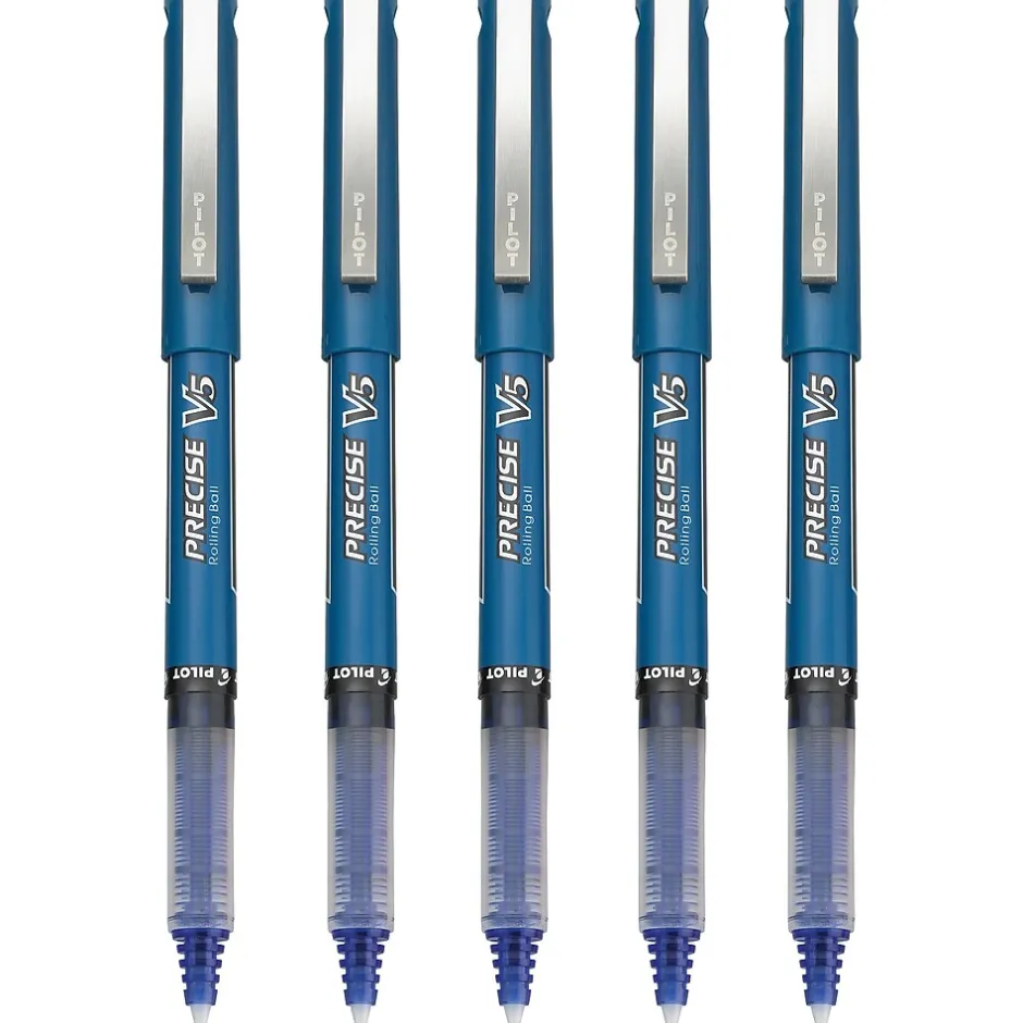 Create detailed illustrations, fill out medical forms and work on other writing tasks with these extra-fine-point stick pens. The bold liquid ink produces skip-free lines for a smooth and consistent writing experience. These Pilot Precise V5 blue premium rolling ball pens include caps, so you can cover the tips when not in use, preventing the ink from drying out.