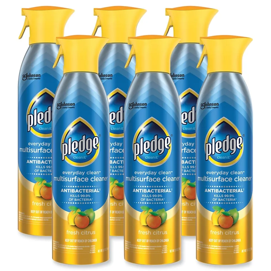 Shine, polish and repel dust with this 9.7-ounce multi-surface antibacterial everyday cleaner. This spray is usable on marble, granite, wood, laminate, stainless steel, electronics, and most other hard surfaces. This Pledge multi-surface antibacterial everyday cleaner contains no CFCs and features a citrus scent that is sure to delight, while the spray nozzle makes it simple to use.