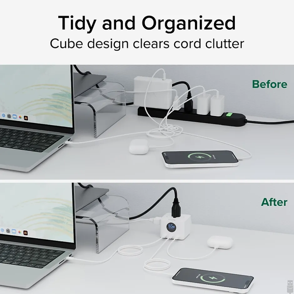 - Triple USB-C – Plugable’s fast charging block features 3x USB-C ports providing up to 67W total. An LED display shows combined power output so you always know what your connected USB-C devices are pulling. Ideal for home, office, or as a travel charging station