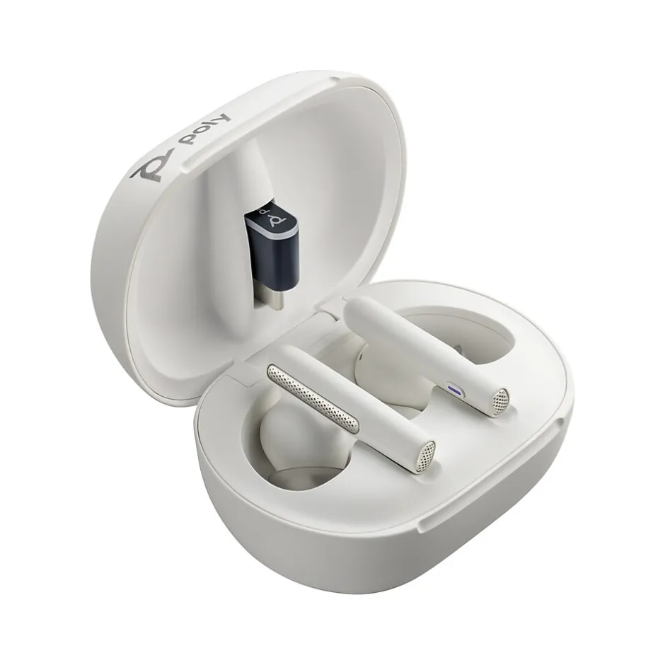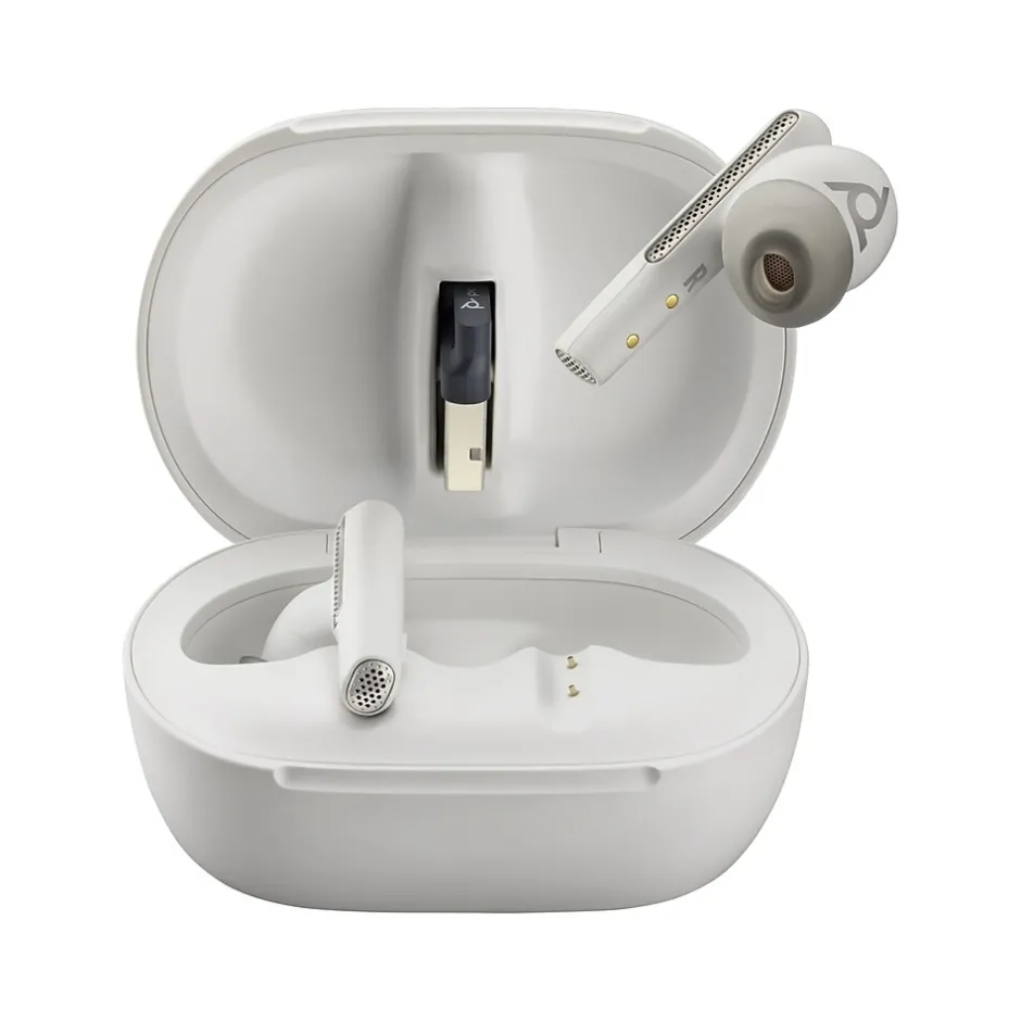 And the touchscreen charge case (Voyager Free 60+ UC) doesn’t just go the distance — it gives you control at your fingertips, so you can connect instantly with your team, playlists, podcasts, and even inflight entertainment. Your IT department will also approve because they are certified to work with the latest meeting platforms including Microsoft Teams and Zoom, and they can be centrally managed from anywhere in the world.