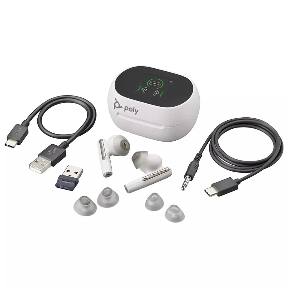 - View your status, charge your earbuds, and control your meetings, calls, and music with the touchscreen charge case
