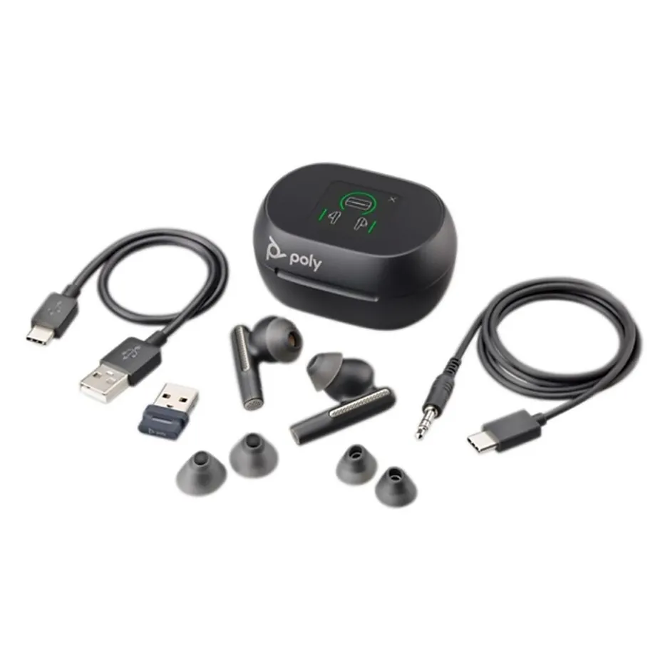 Voyager Free 60 Series is a hybrid work solution to meet every moment. With ANC and a three-mic array to isolate your voice, you’re confident both sides of the call are crystal clear. And the touchscreen charge case (Voyager Free 60+ UC) doesn’t just go the distance — it gives you control at your fingertips, so you can connect instantly with your team, playlists, podcasts, and even inflight entertainment. Your IT department will also approve because they are certified to work with the latest meeting platforms including Microsoft Teams and Zoom, and they can be centrally managed from anywhere in the world.