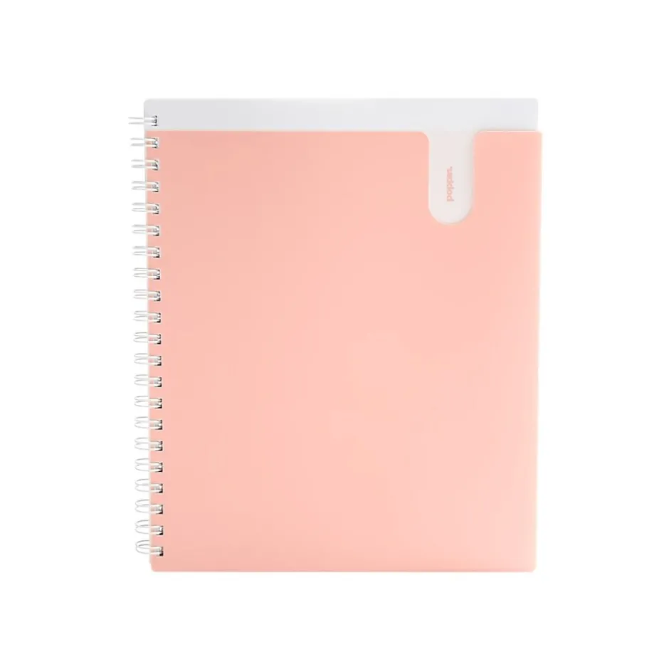 Be prepared to take notes during classes, training sessions, and other activities with this spiral notebook. The front cover pocket is translucent, allowing you to view contents at a glance, while the blush color adds a splash of fun to your day. This Poppin one-subject pocket blush spiral notebook has three-hole-punched pages, making it simple to incorporate them into binding systems.