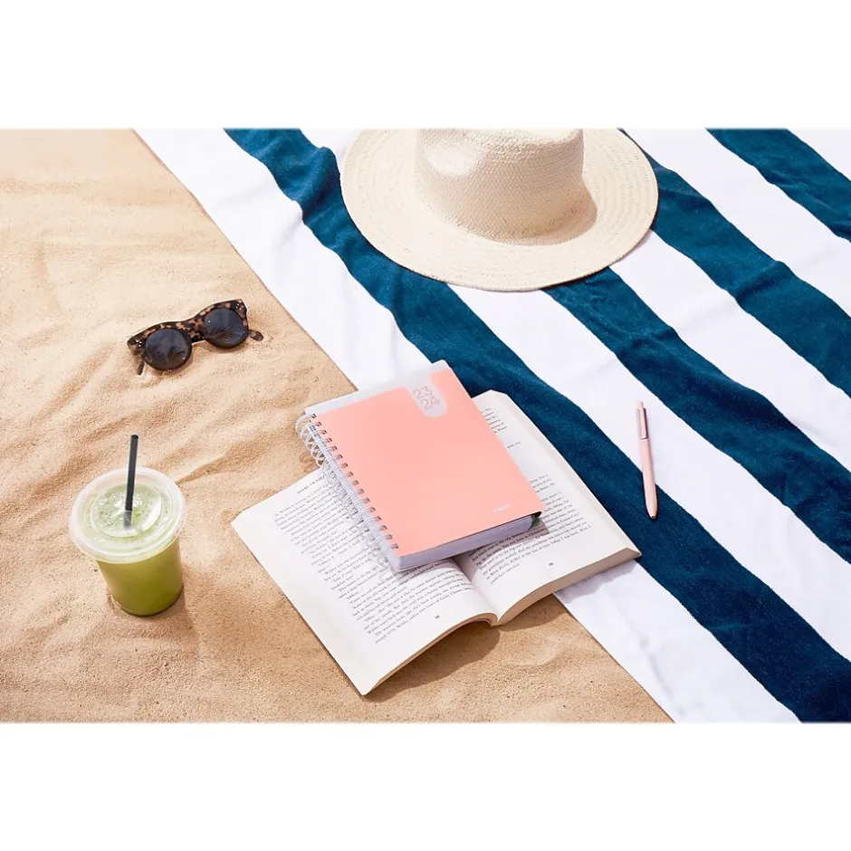 Whether you’re keeping tabs on lunch meetings or crossing off the days until vacation, the Poppin 18-month pocket book planner for 2023-2024 makes all of your plans a little more colorful. Equipped with color-coded reinforced monthly tabs, a handy front pocket, and three pages of stickers, this planner is perfect for keeping track of everything the year throws your way.