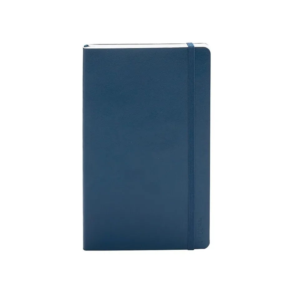 Enjoy the easy portability with this soft-cover notebook. With a portable and bendable design, this notebook is ideal for taking with you on the go and comes with an elastic closure, providing protection to pages and keeping your ribbon bookmark in place. This Poppin navy notebook has 192 lined white pages, providing plenty of room for sketches, charts and other projects.