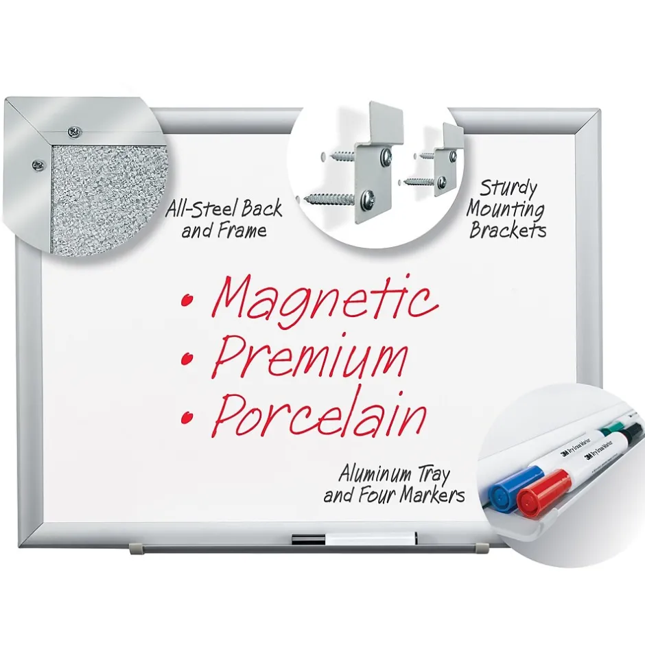 - 3M™ Porcelain Dry Erase Boards are magnetic, have a galvanized steel backing for extra durability and contain 15% recycled content