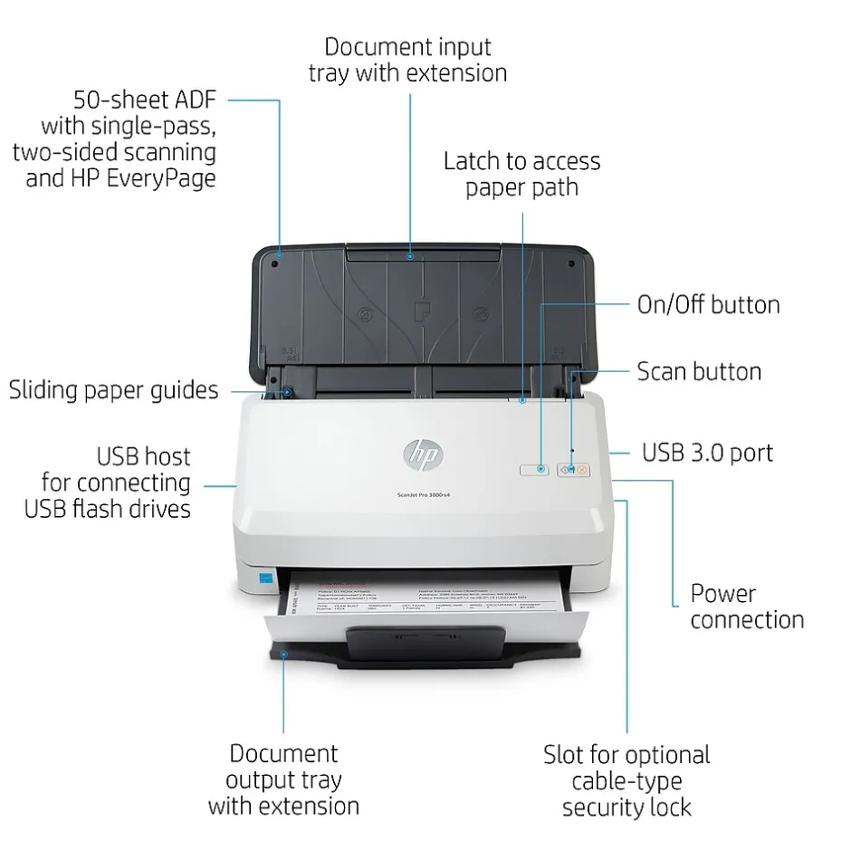 This HP Scanjet Pro desktop scanner is fast, affordable, and designed to handle everything from simple color jobs to complex workflows. Quickly and reliably digitize larger projects with scan speeds up to 40 ppm/80 ipm and a 50-page ADF. Recommended for 4000 pages per day.