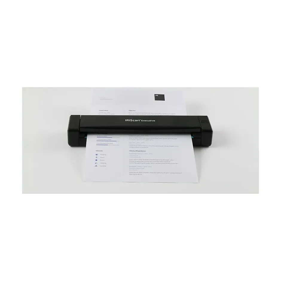 The Iris 458738 executive 4 mobile duplex scanner has a resolution of 600 dpi that gives clear images. It scans at a speed of 3 secs. It features TWAIN & WIA drivers where both acquire images without showing dialog from scanners. It comes with duplex scanning and one button operation.
