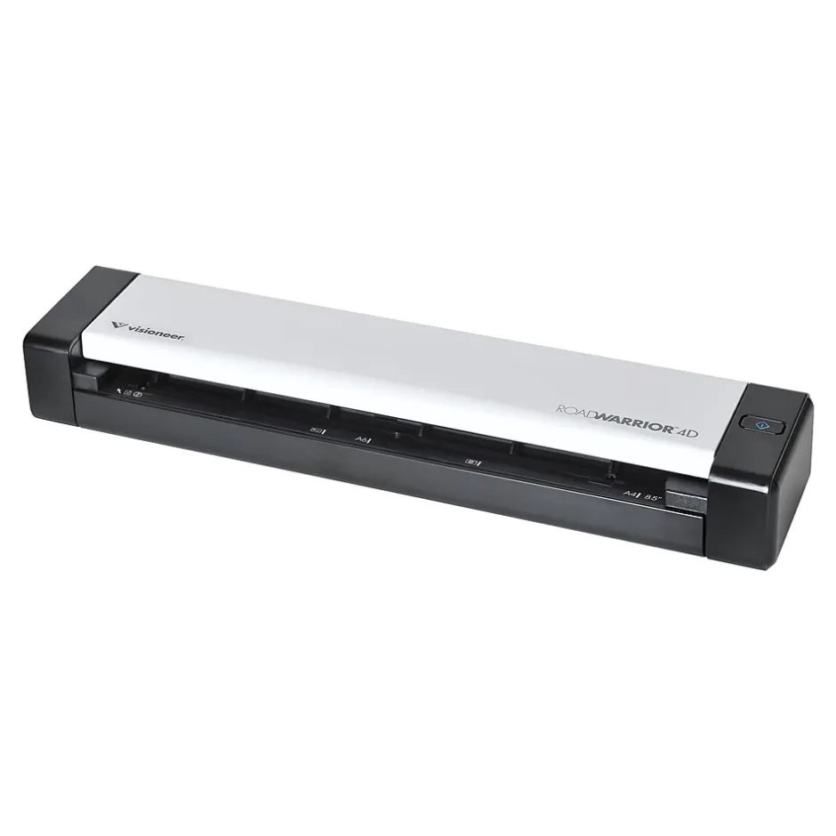 Turn documents into searchable PDFs with this Visioneer RoadWarrior 4D scanner. The compact, lightweight design conserves office space and fits into laptop bags for easy scanning on the go. This sheet-fed scanner draws power via USB and quickly scans and digitizes one- and two-sided documents of varying sizes into searchable PDFs with a resolution of 600 dpi. The continuous feed function lets this Visioneer RoadWarrior 4D scanner automatically create multipage files, while the included Visioneer Acuity software corrects and enhances images for greater clarity and legibility.