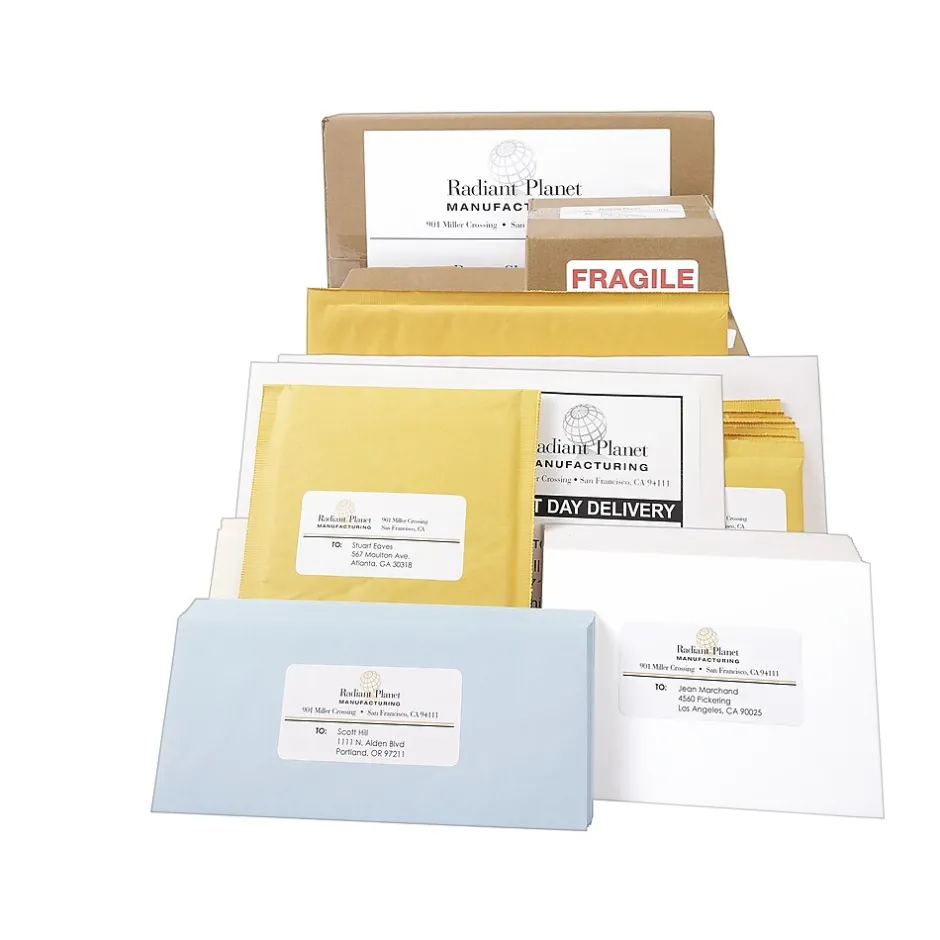 Create a professional appearance with these large Pres-a-ply laser/inkjet address labels. They peel off with ease and stay where you stick them. Make your own labels with templates and designs from Avery, and then print the labels with any laser printer. With 100 labels per pack, these Pres-a-ply address labels can tackle labeling tasks for busy offices and shipping departments.
