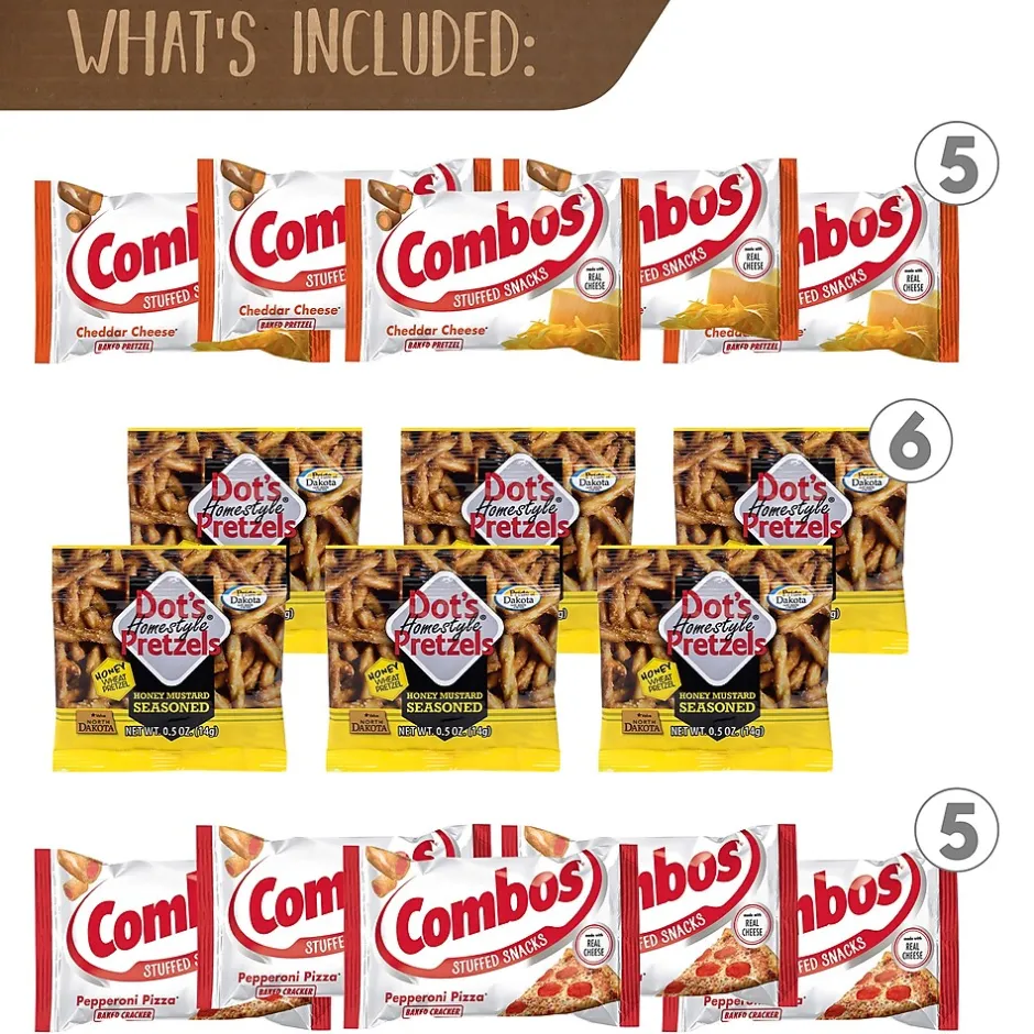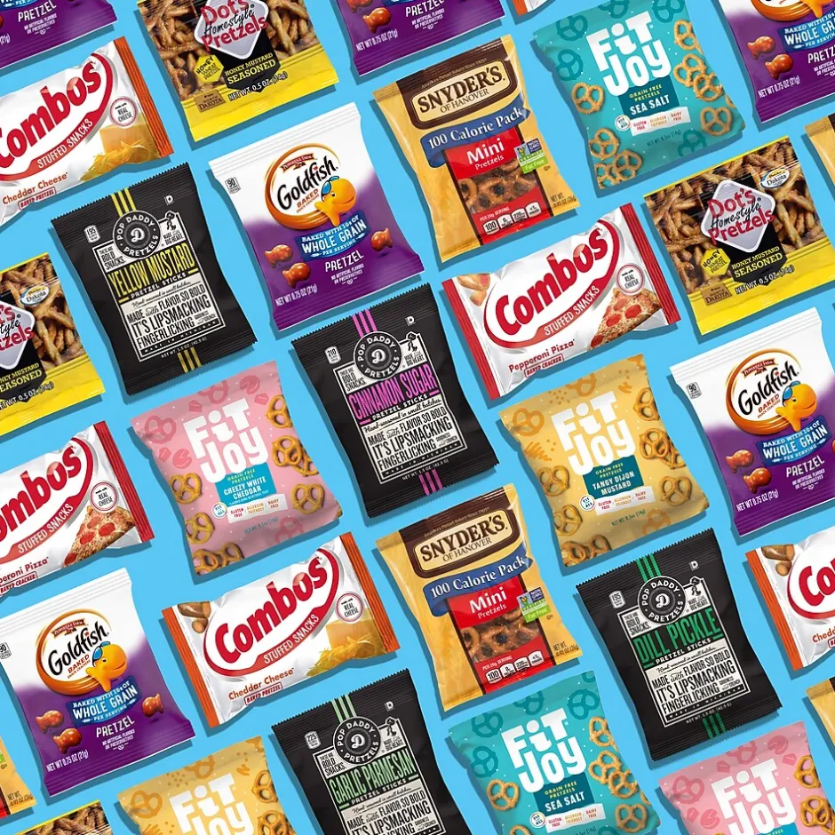 - Includes brands like Dot’s, Snyders, Pepperidge Farms, Combos, Fit Joy and Pop Daddy for a total of 38 individual bags of pretzel goodness