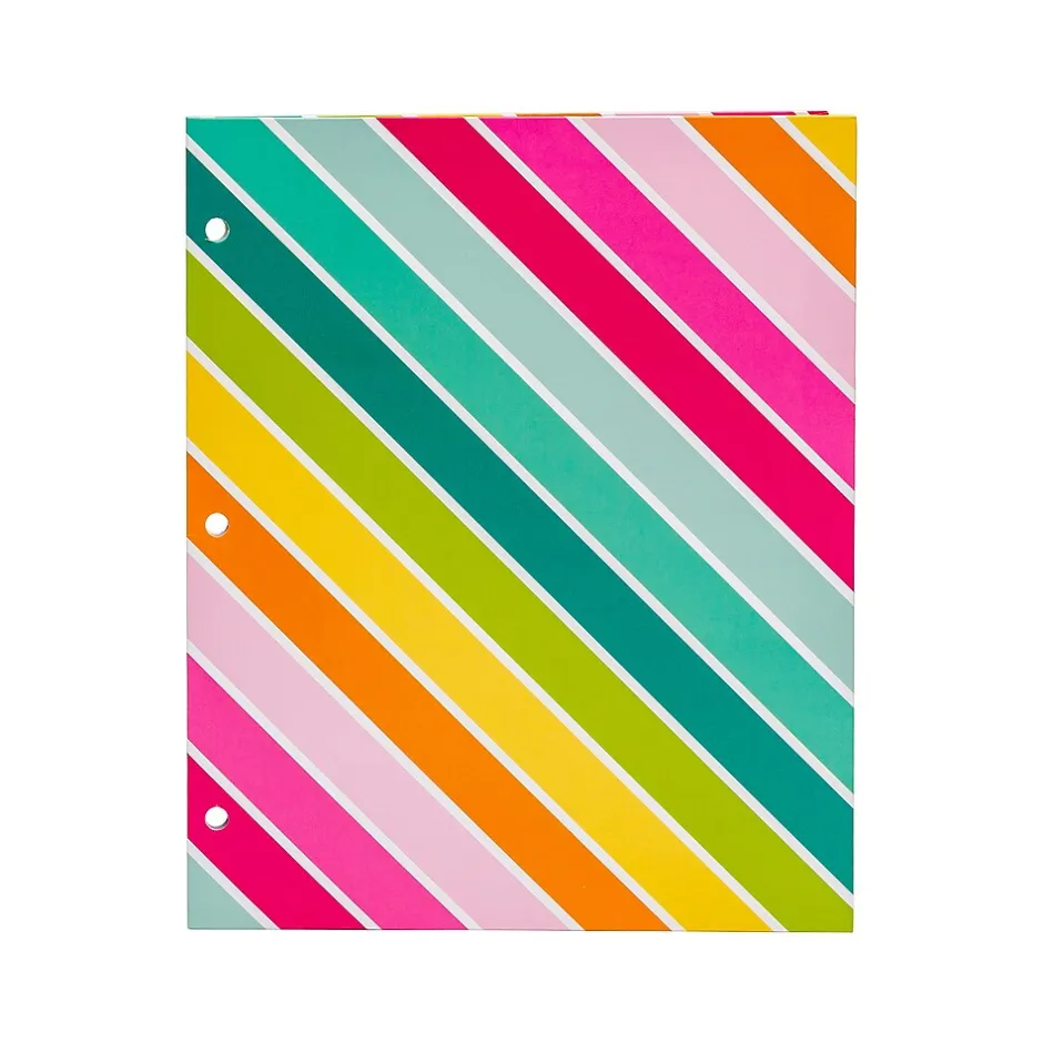 The Carpe Diem Rainbow Color Wash pocket portfolios can be used to protect all your important papers. Two large pockets ensure your work remains neatly organized while providing easy, convenient access. Perfect for school, work, and project organization, the portfolios have two interior pockets and a die-cut slot to hold a business card or label. Update the mundane with these stylish folders that look great in an academic, professional, or community setting. Three-hole punched for easy use with your favorite binder (standard three-ring binder), and durable enough to use independently.