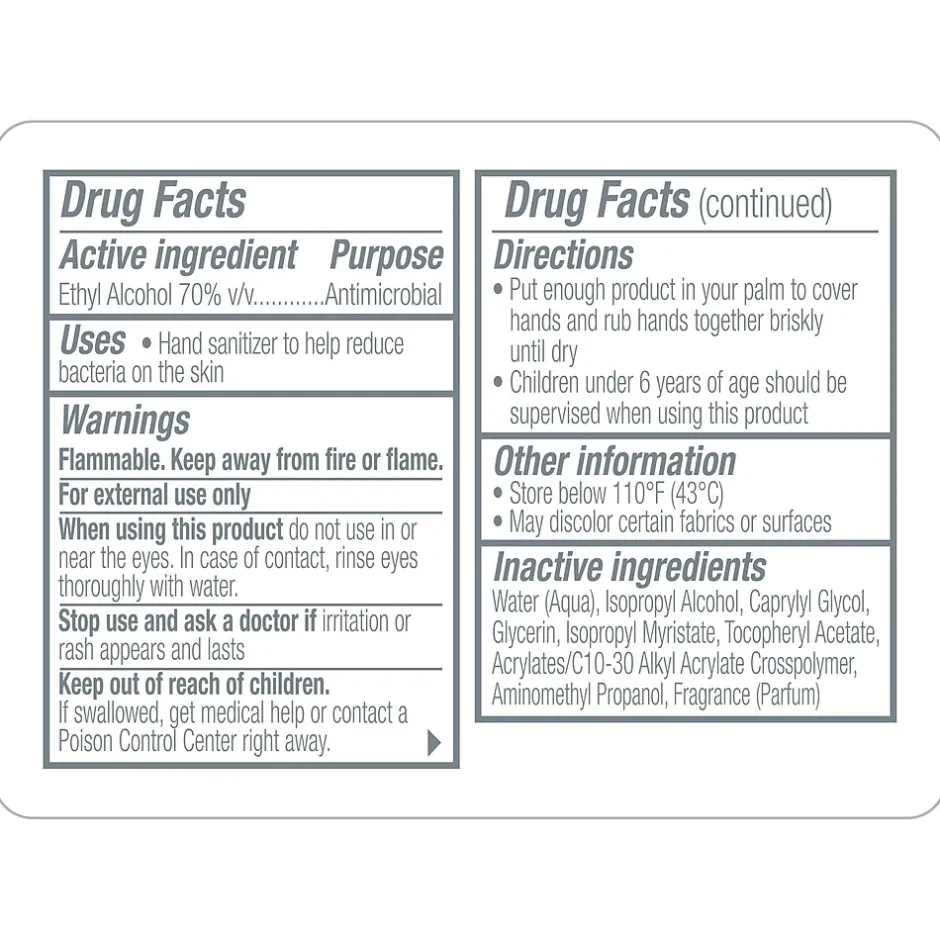 - PURELL® hand sanitizer gel bottle provides protection against germs throughout the day while employees and visitors are on-the-go