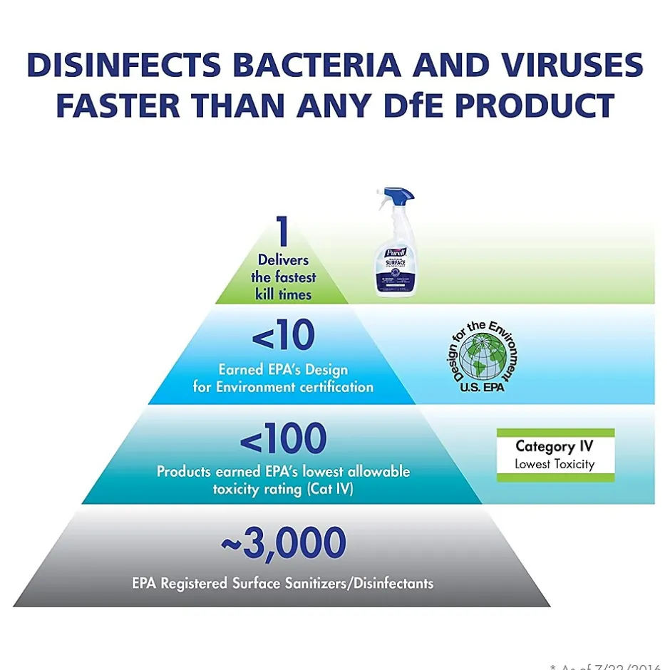- Fragrance-free formula contains no bleach, harsh fumes, or precautionary statements with EPA’s lowest allowable toxicity rating and delivers the fastest overall disinfection time of any Design for the Environment (DfE) product.