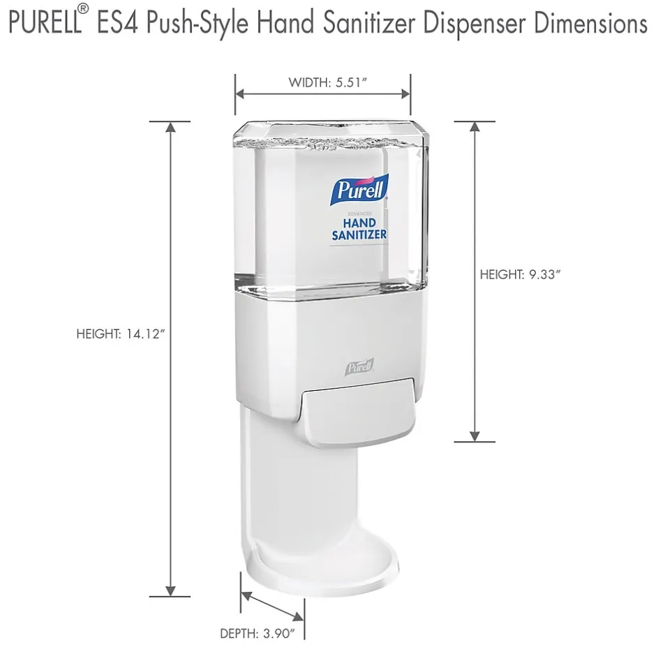 - Case Includes: 1 – PURELL ES4 Manual Hand Sanitizer Dispenser in White, and adhesive mounting tape. (compatible 1200 mL hand sanitizer refills sold separately)