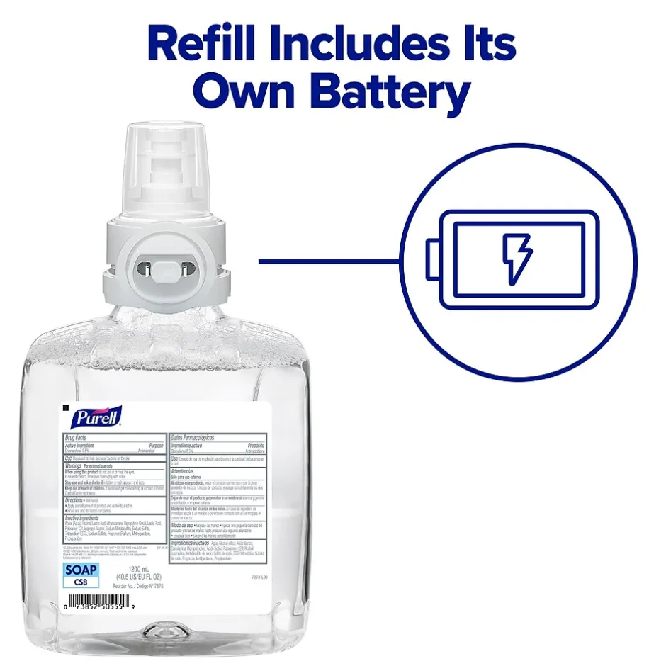 Built on more than 65 years of dispensing innovation, the PURELLĀ® CS8 Automatic Soap Dispenser is designed for facilities that value well-being. Research shows that 84% of people were satisfied with the overall cleanliness of a facility with PURELLĀ® products. The dispenser is designed to simplify maintenance and help decrease labor by eliminating battery replacements. Each refill (sold separately) features Energy-on-the-Refill technology, which means each one comes equipped with its own battery. With a large-sight window, monitor product levels with one look.