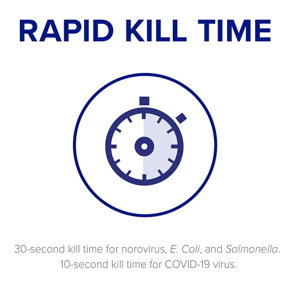 - Because it’s formulated for convenience and ease-of-use, you get powerful germ-kill on the surfaces people touch most with a eliminates 99.9% of germs and dissipates quickly – meaning you can get back to what’s important.