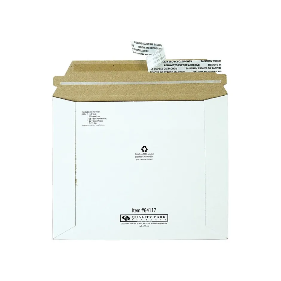 Prepare disks for shipping with these Quality Park Redi-Strip economy disk mailer envelopes. The self-seal adhesive strips stay securely in place to prevent items from falling out, while the durable heavy-duty paperboard stands up to the rigors of mailing. Each envelope features preprinted sections for addresses, making them easy to label. With caution warnings printed prominently on the front, these Quality Park Redi-Strip economy disk mailer envelopes alert mail carriers to fragile items.