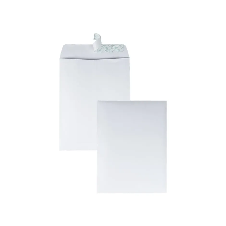 Protect documents and other items from ripping, moisture, and puncturing with these open-end white envelopes. Redi-Strip closure saves time and makes a secure permanent seal. Simply peel off strip and press for a quick seal. These Quality Park catalog envelopes come in a pack of 100, making them ideal for busy offices.