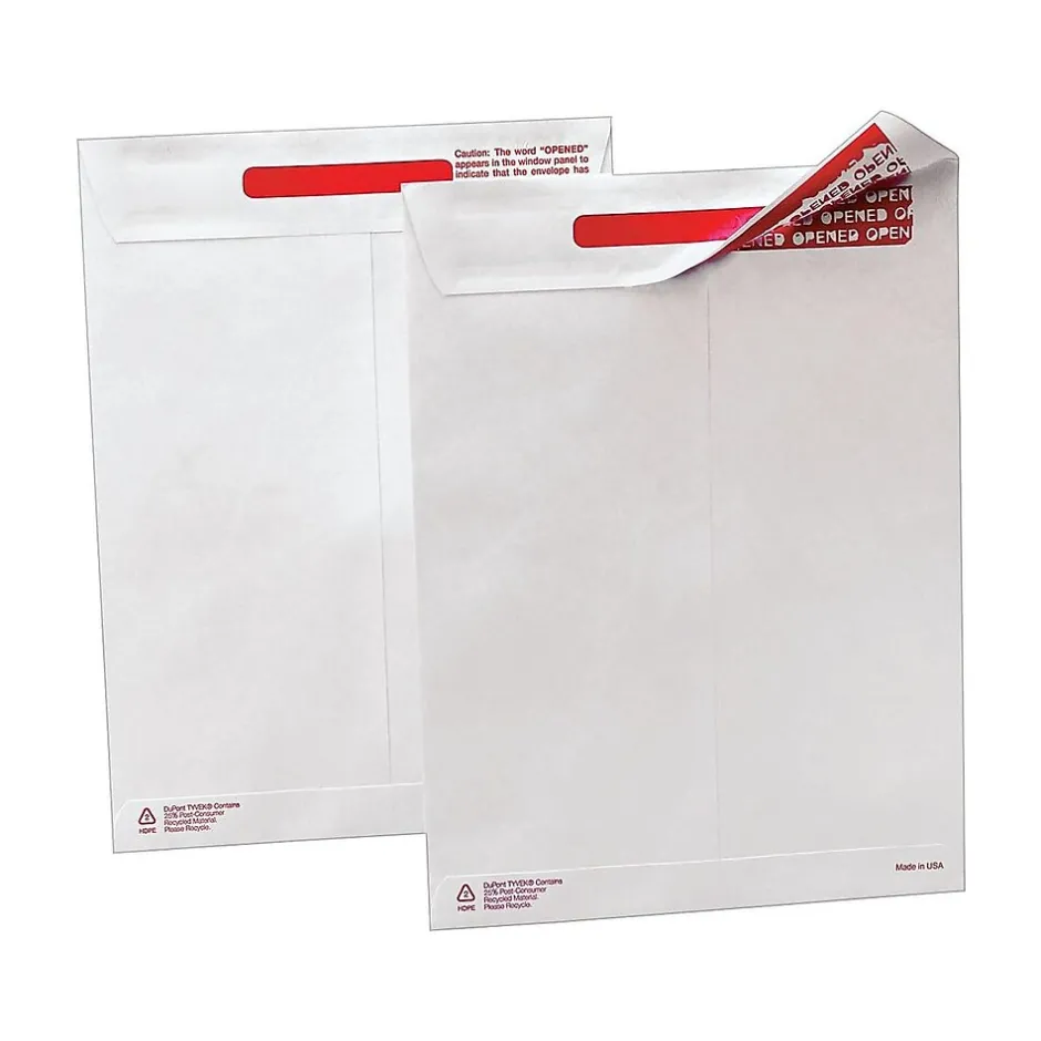 Safely mail photographs or sensitive paperwork in these tough, durable Tyvek mailers that protect contents from punctures, scratches, moisture or impact-related damage. These Quality Park Survivor self-adhesive Flap-Stik Tyvek mailer envelopes stay closed during transit and special panels reveal the word “Opened” in bold red letters if forced open.